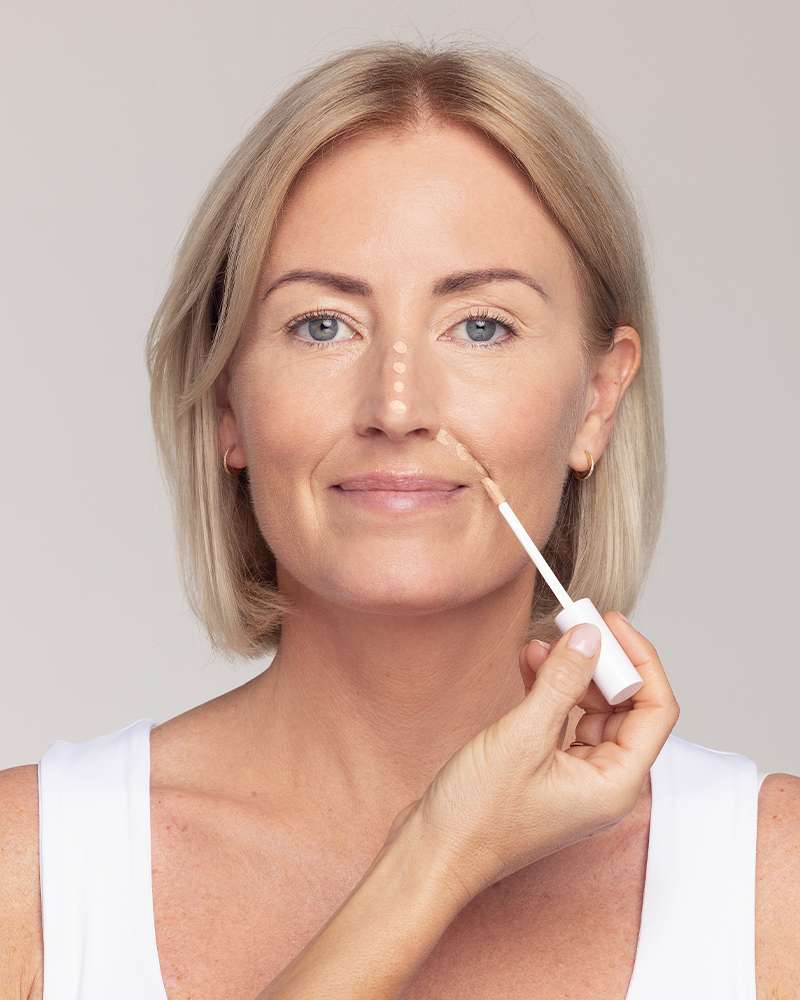 Applicera en liten mängd på de områden du vill täcka, jämna ut hudtonen, ljusa upp och få lyster. Med en snedställd, smidig och mjuk applikator, får du bästa precision och rätt mängd produkt vid applicering.